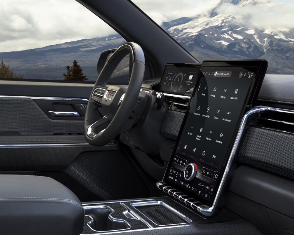 The Sierra EV Denali Edition 1 is a tech lover's dream. The 16.8-inch touchscreen is the heart of the cabin. With a sleek portrait orientation, it controls everything from navigation to climate. Wireless Apple CarPlay and Android Auto keep you connected effortlessly.