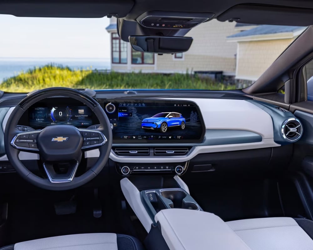 From cold mornings to summer afternoons, the Equinox EV is designed for all seasons. Heated front seats, mirrors, and steering wheel come standard, while higher trims offer ventilated seats and heated rear cushions. The dual-zone automatic climate control keeps everyone comfortable, no matter where they sit. You can even precondition the cabin while it’s still plugged in, using stored electricity instead of draining the battery.