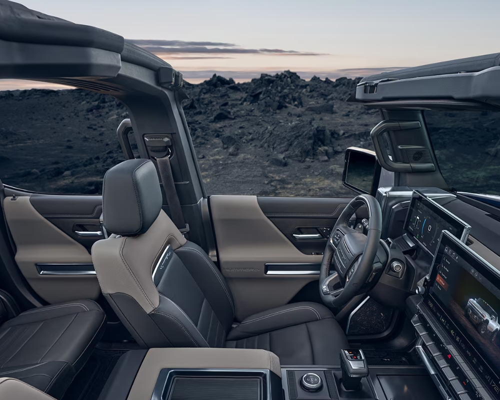 Inside, the cabin feels open and modern. The Infinity Roof with Transparent Sky Panels brings in light and air while still protecting you from the weather. Whether you are driving along the coast or through mountain fog, the HUMMER EV feels bright and spacious. Premium finishes, rich materials, and an available 22-speaker audio system make every trip comfortable and immersive.