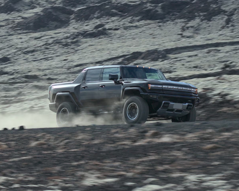 The HUMMER EV looks like nothing else on the road. Its wide stance, strong body lines, and LED signature lighting make a statement of power and style. The new Carbon Fibre Edition adds exclusive touches like a matte Magnus Grey exterior, Velocity Ember interior, and black carbon fibre wheels.