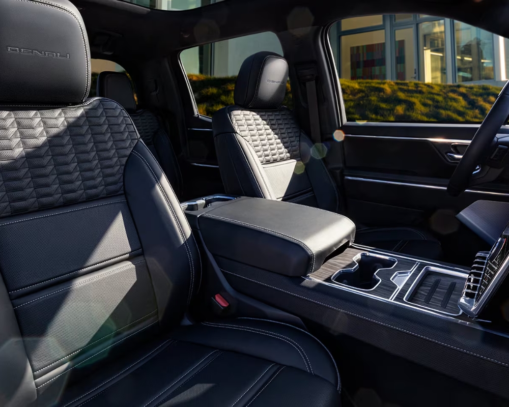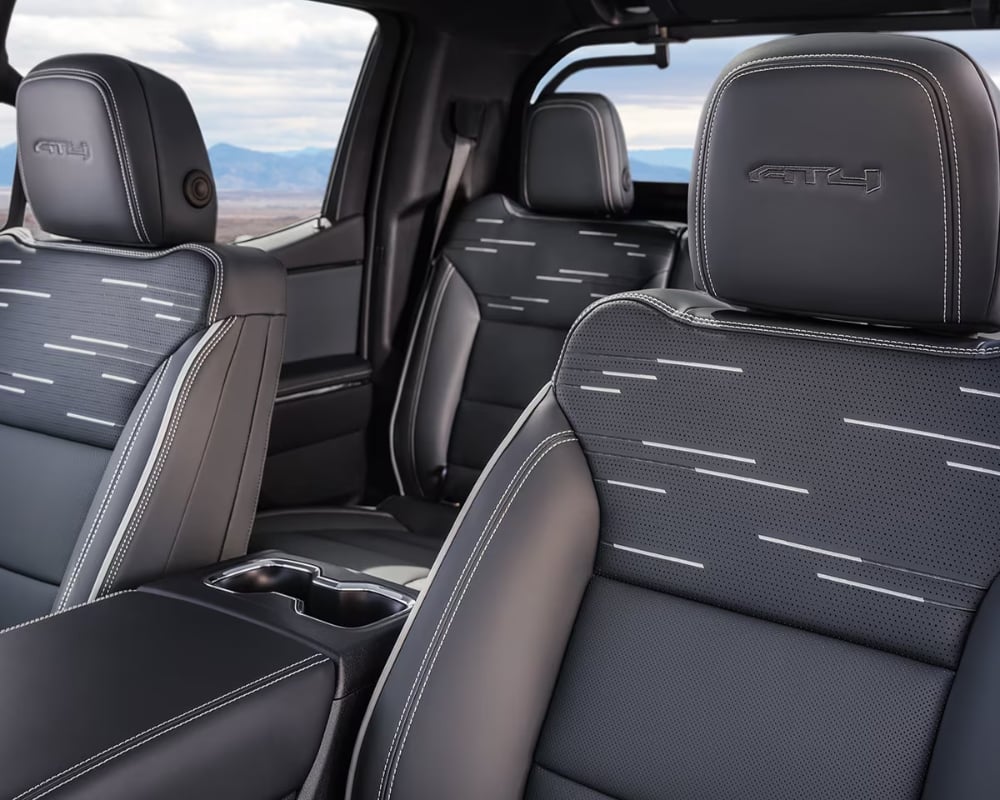 Inside the cabin, Sierra continues to raise the bar for comfort and quality. The layout feels clean and inviting, with rich materials and smart storage throughout. Heated and ventilated seats, available massaging functions, and a spacious Crew Cab design make every drive relaxing.